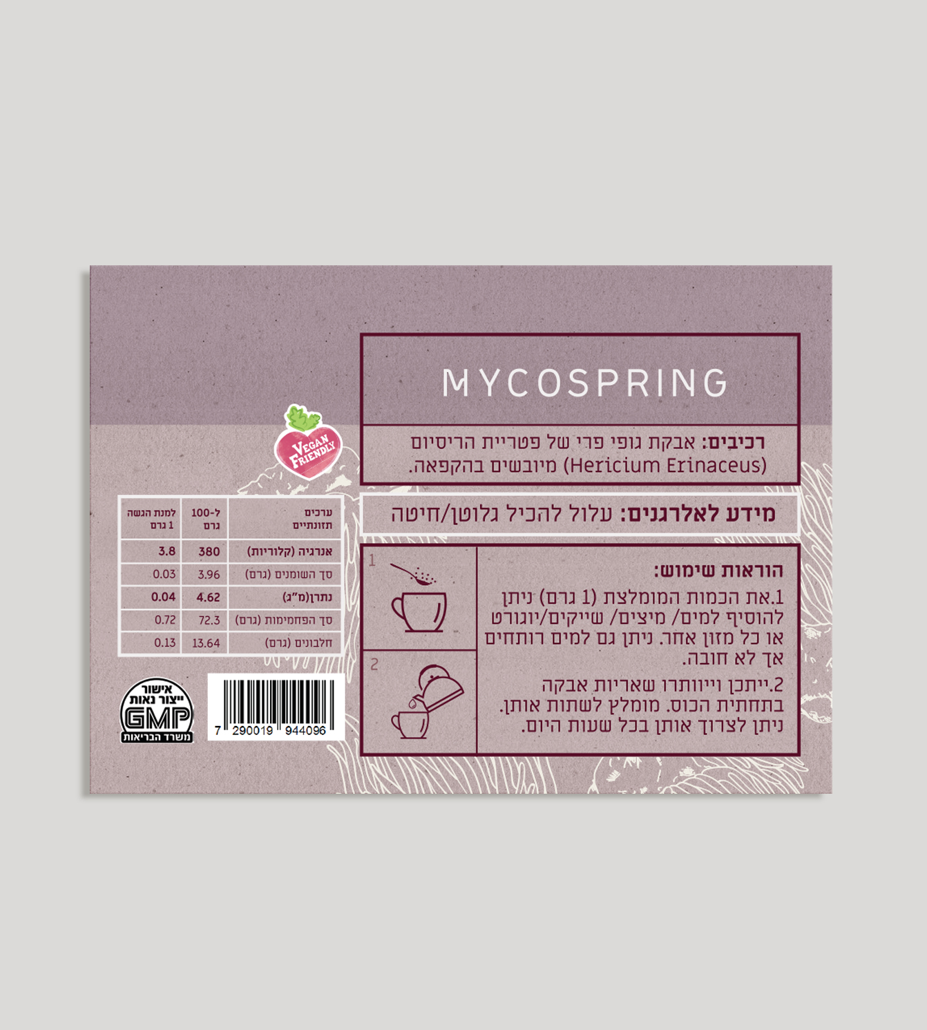 הפטריות של מיקוספרינג גדלות בחוות הגידול שלנו במושב בית הילל שבצפון. הפטריות גדלות על מצעים אורגניים, בתהליך גידול קפדני הכולל בקרת איכות שוטפת המפקחת על הימצאותם וריכוזם של החומרים הפעילים בפטרייה.